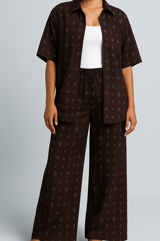SETEMA WIDE FLARE&FLOW PANTS - BROWN&WHITE